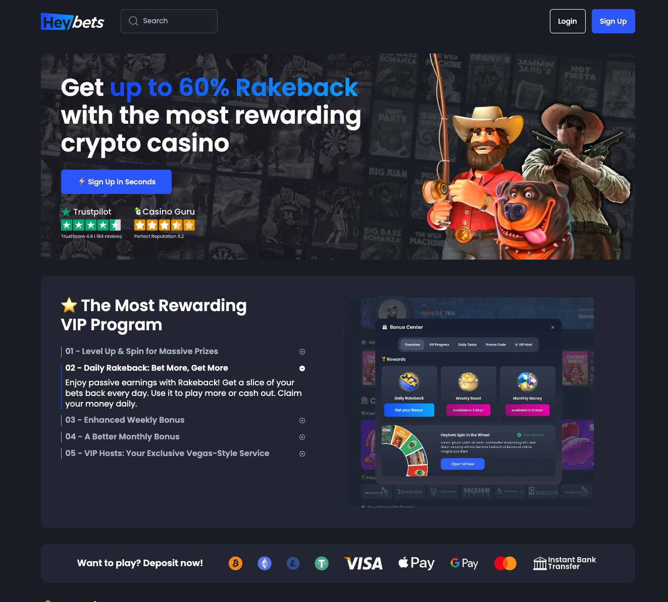 HeyBets is turning heads with its huge sign-up bonus and sleek design. Built for both new and pro players, it supports multiple cryptocurrencies and minimal KYC interference.
