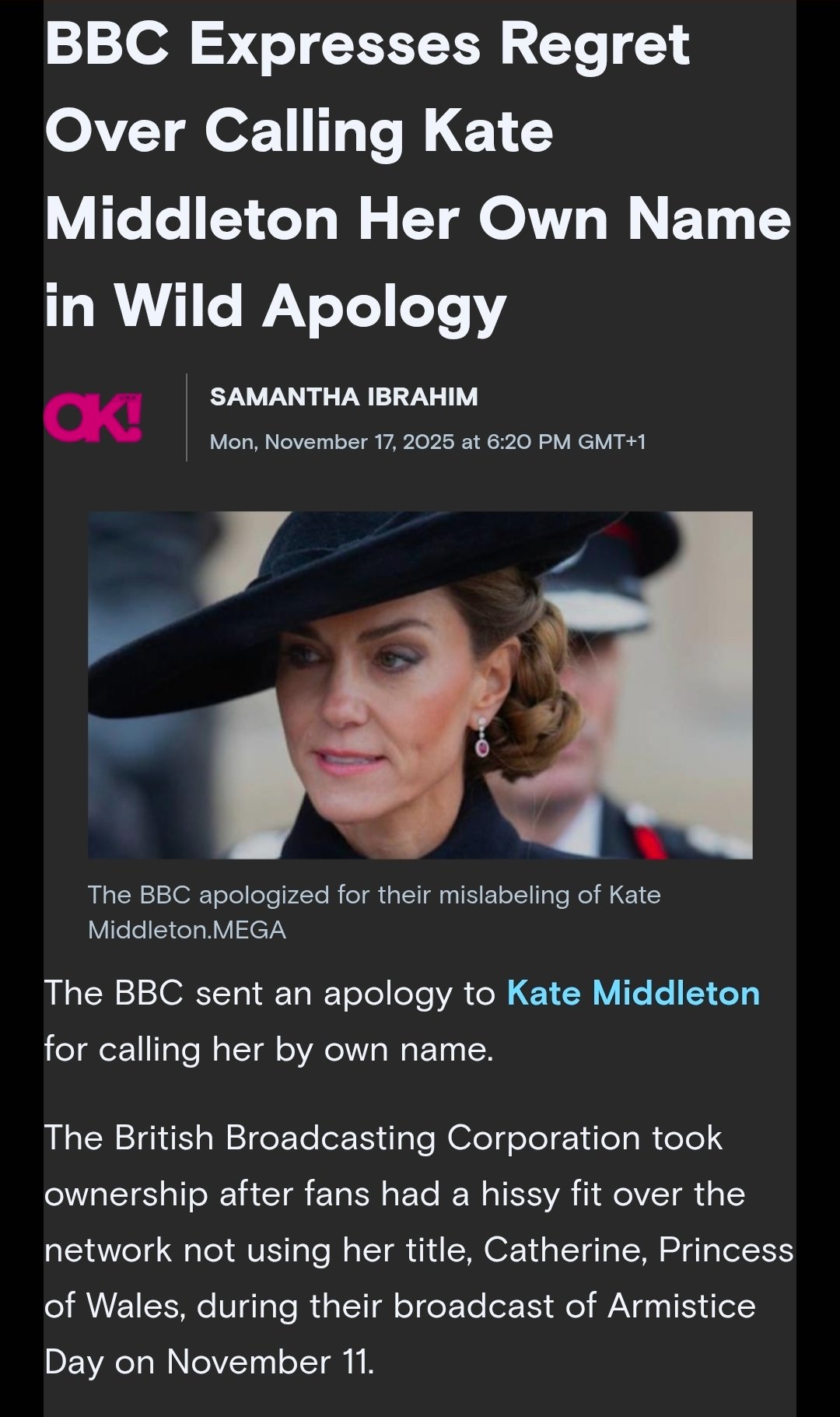 Armistice Day also known as Remembrance Day commemorates the end of World War I and has become a day to remember all those who have lost their lives in conflict. The Princess of Wales made her first appearance at the Armistice Day Service of Remembrance on November 11, leading the nation in a two-minute silence before laying a wreath on behalf of the royal family.The apology comes after the BBC also apologized to US President Donald Trump last week over an editing mishap that featured in a documentary, which he has threatened to sue over.On Thursday, the BBC apologized to Trump for how a 2021 speech was cut together in an October 2024 documentary titled Trump: A Second Chance? saying that it sincerely regrets the manner in which the video clip was edited.However, the BBC rejected a claim of defamation made by the US presidents lawyers and has refused to pay any compensation. The controversy plunged the broadcaster into its biggest crisis in years and triggered the resignations of BBC director general Tim Davie and head of news Deborah Turness. Trump subsequently told reporters that he intends to sue the BBC for between $1 billion and $5 billion despite the broadcasters apology. I think I have to do it, Trump told reporters. Theyve even admitted that they cheated. They cheated, they changed the words coming out of my mouth.