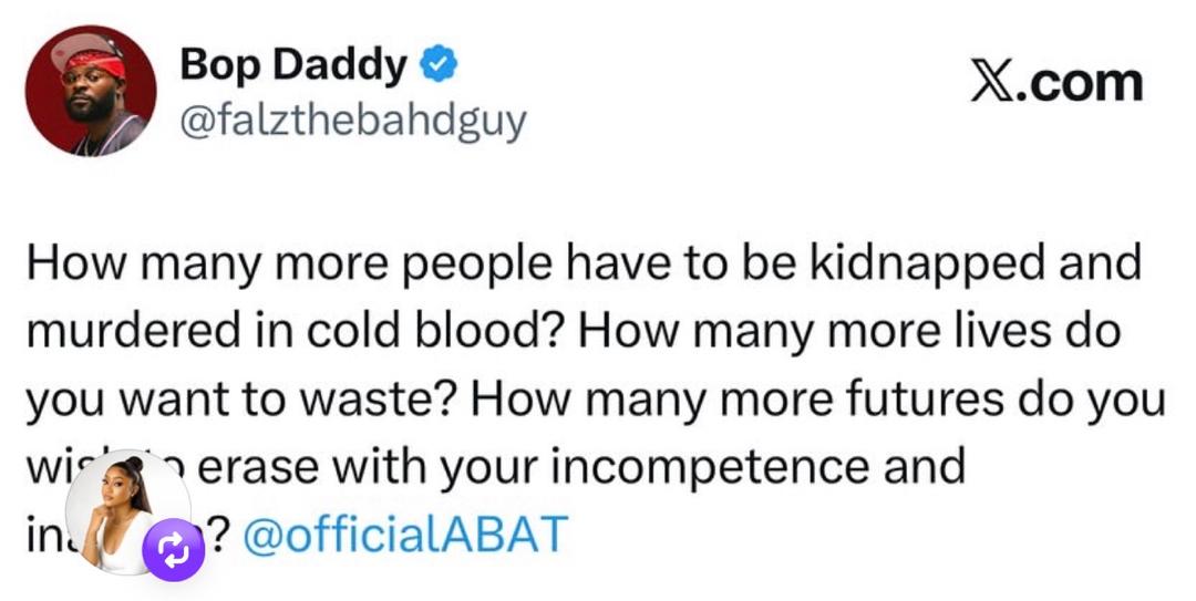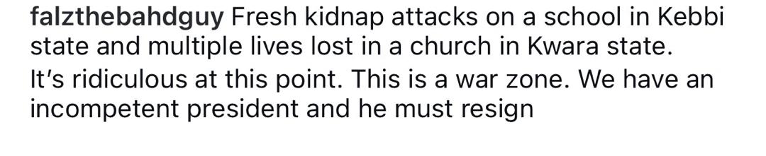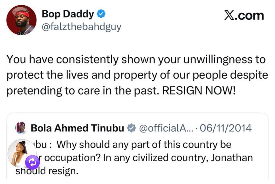 Following the increasing spate of insecurity across the country, rapper, Folarin Falana aka Falz, has called for the resignation of President Tinubu. In a post shared on X, Falz asked the President to vacate his seat following the several k!dnapping and k!llings in the country. He said the President has consistently shown his unwillingness to protect the lives of Nigerians and asked him to resign now. Read his tweets below
