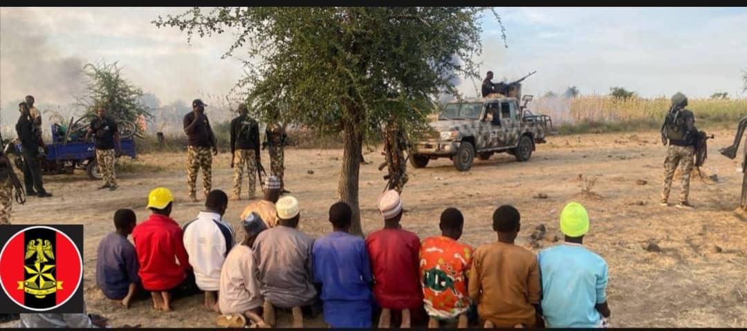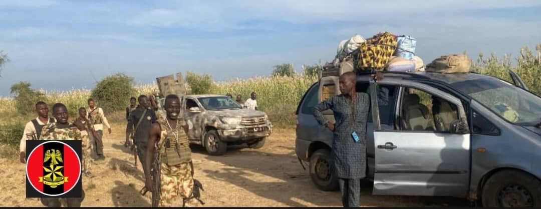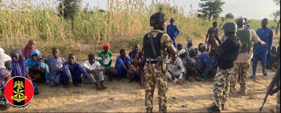Troops of the Nigerian Army have rescued 86 kidnapped victims, foiled terrorists' ambush and arrested 29 logistics suppliers in a decisive operation in Borno State. Media Information Officer, Joint Task Force North East Operation HADIN KAI, Sani Uba, who disclosed this in a statement on Sunday, November 9, 2025 said troops also destroyed a Boko Haram/ISWAP camp. The feat recorded on Sunday followed a distress alert from surveillance cameras indicating the movement of terrorists kidnapping civilians along the Buratai-Kamuya road. Troops of Operation HADIN KAI (OPHK), Joint Task Force North East, have recorded another major success in the ongoing counter-terrorism and counter-insurgency operations in Borno State, the statement read. "Troops of 135 Special Forces Battalion, under Sector 2 OPHK on 9 November 2025, encountered Boko Haram/ISWAP terrorists at Dutse Kura after discovering that terrorists were abducting civilians and vehicles along the BurataiKamuya Road. "The troops thwarted the attack, pursued the terrorists towards Mangari, and overpowered them in a follow-up encounter near a camp, forcing the insurgents to flee in disarray. A search of the area led to the discovery of 11 makeshift terrorists structures and the rescue of 86 kidnapped victims comprising men, women, and children. "Items recovered include one AK-47 rifle, five magazines with 73 rounds, four PKT ammunition belts, five civilian vehicles, five motorcycles, eight bicycles, and two logistics tricycles. The terrorists camp was destroyed in situ after clearance operations.  "In a related operation, troops deployed at Mangada, arrested 29 terrorist logistics suppliers enroute Chilaria with several items. Recovered items include two pickup vans and a tricycle loaded with Premium Motor Spirit, about 1,000 litres of petrol in jerricans, four gallons of engine oil, two new gun truck tyres, huge cache of medical consumables, and large quantities of foodstuffs and provisions. "All operations were conducted successfully with no casualty on the part of own troops.  The Military High Command commended the gallantry and professionalism of the troops while charging Operation HADIN KAI to sustain operations to deny terrorists freedom of action across the North East theatre.