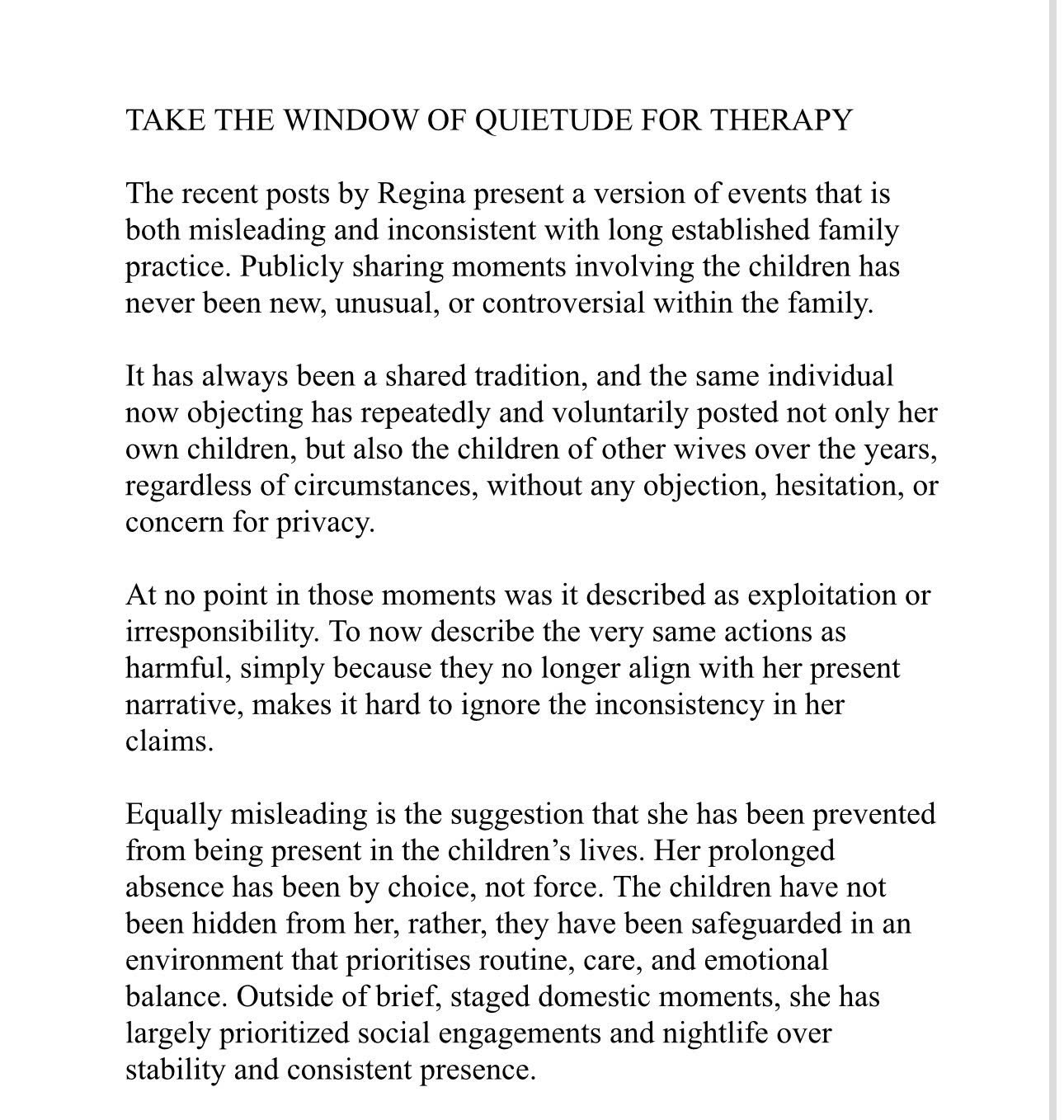 Senator Ned Nwoko has responded to claims made by his estranged wife, Regina Daniels, that he has stopped her from seeing their children, Munir and Khalifa. Earlier today, Regina released a statement on social media accusing Ned of preventing her from seeing their children. She also accused him of posting their photos and videos online just to spite her as their marital crisis lingers. She stated that she has not been able to talk to her kids since mid November, after she left her marriage and accused husband Ned Nwoko of domestic violence. She accused Ned of devising different tactics to keep the kids away from her. Read here. In a statement released from his media aide this afternoon and posted on his social media, Nwoko denied claims he has prevented Regina from seeing their kids. He pointed out that a court has ruled that she must undergo drug rehabilitation and be assessed by the Abuja Social Welfare Department before access can be restored to Munir (5) and Khalifa. He also reacted to Regina frowning at him for posting photos of their kids on social media. He argued that Regina has in the past also posted videos and photos of their kids on social media and wonders why she is against it now. Read his statement below