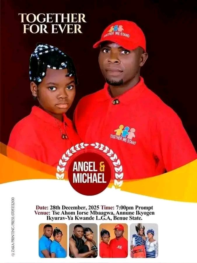 Leaders of the Ikurav-Ya community in Kwande Local Government Area of Benue State on Wednesday, launched an investigation into alleged underage marriage that has stirred public debate since couple's prewedding photos went viral.    According to findings from the inquiry, the bride-to-be, Angel, was born in 2006 and completed her secondary education last year.  Officials also established that both families fully consented to the union.  The girl is also said to be 12 weeks pregnant  The council says the fact-finding exercise was necessary to address misinformation and provide clarity on the issue.   However, according to Zege Orkwande, his personal investigation revealed that the girl is 15 years old and an orphan.  Ikurav-ya President held an investigation on the controversial underaged Marriage Saga today. According to them, here are the facts discovered: The said girl was born in 2006 (19yrs). The girl passed out from secondary school last year. Both parents of the couple are fully in support. My personal facts gathered, the girl is 15yrs and without parents. She's staying with the aunty who couldn't fund her education no more. She's heavily pregnant. She got pregnant before her SSCE paper. At least my noise made them to investigate. The girl is pregnant already while date for marriage is 18th December. Before you support such marriage, wait when you give birth to a girl child then give her to a man at age 15 to marry. Orkwande give up at this point. Una don WIN, he wrote.