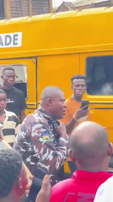 A group of angry Nigerians confronted a police officer over alleged theft. A video circulating online shows the confrontation taking place along a busy road. The video shows a crowd gathered round the officer, while cars try to pass through the narrow, busy road amid the confrontation. The officer had been beaten mercilessly and was bleeding from his temple and lips. Ole, the Yoruba word for thief, was screamed at the police officer by the crowd.