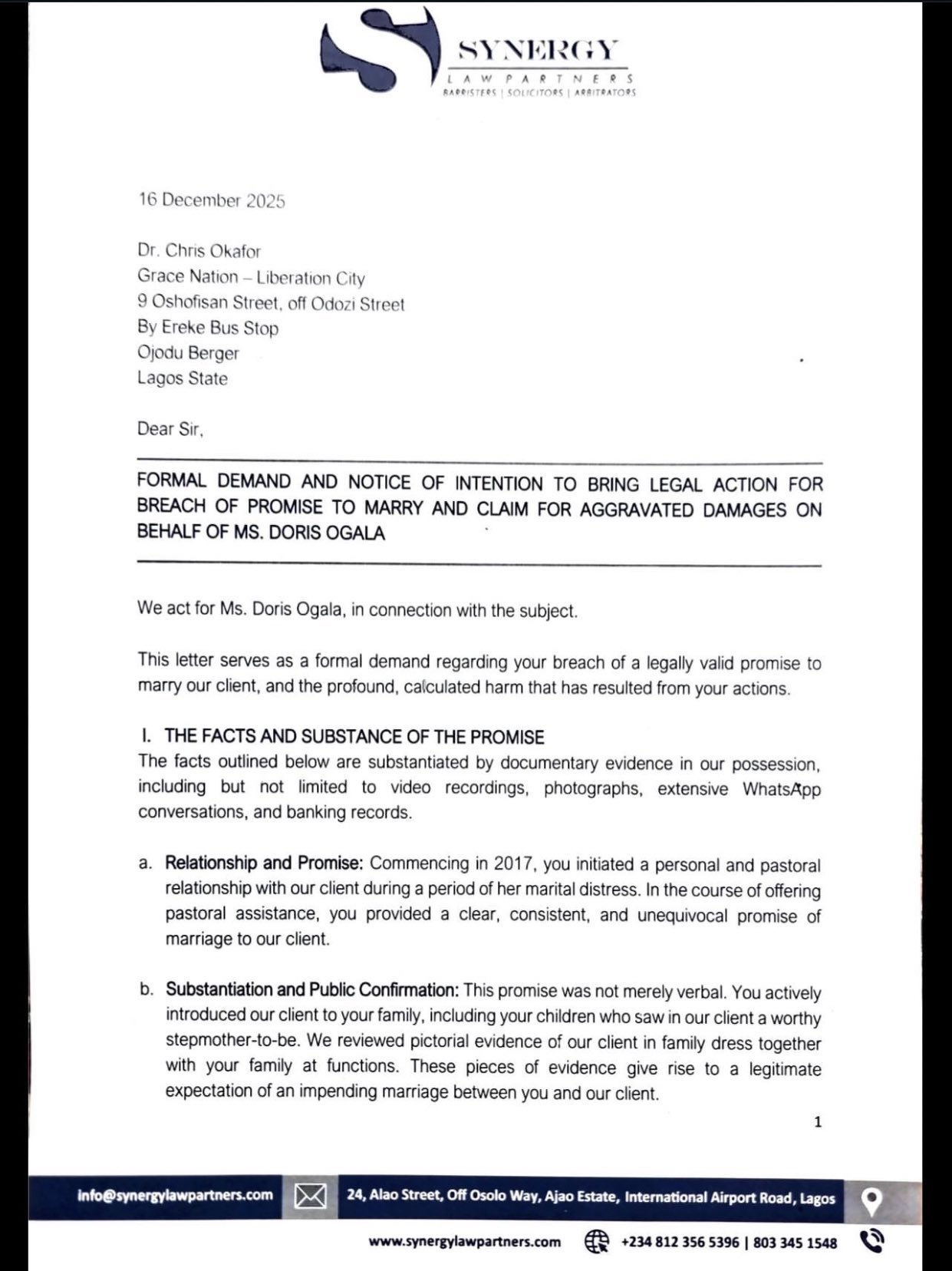 While details of the court filings are yet to be fully made public, the development marks a significant escalation in the highly publicized dispute that has played out both online and in the media.As of the time of filing this report, Pastor Chris Okafor has not issued an official response to the lawsuit. The case is expected to attract considerable public attention as it progresses, given the profiles of both parties and the sensitive nature of the allegations.The court is yet to fix a date for hearing. The post Doris Ogala slams Pastor Chris Okafor with a N1bn Lawsuit over unfulfilled marriage promise appeared first on Linda Ikeji Blog.