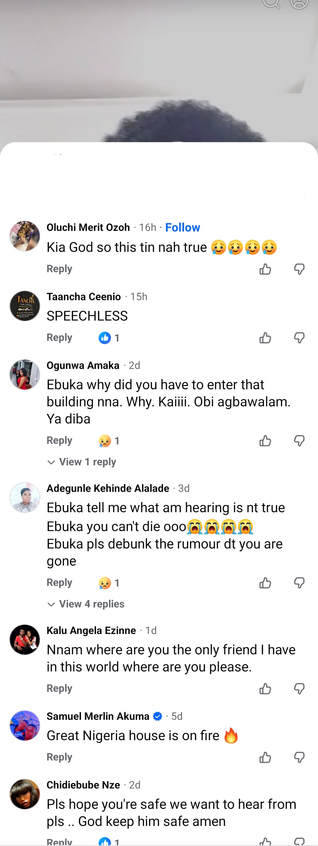 According to Friends, the car they arrived in is still parked at the car park but they can't be accounted for. Friends have gone on Chukwuebuka's last post to express sorrow.