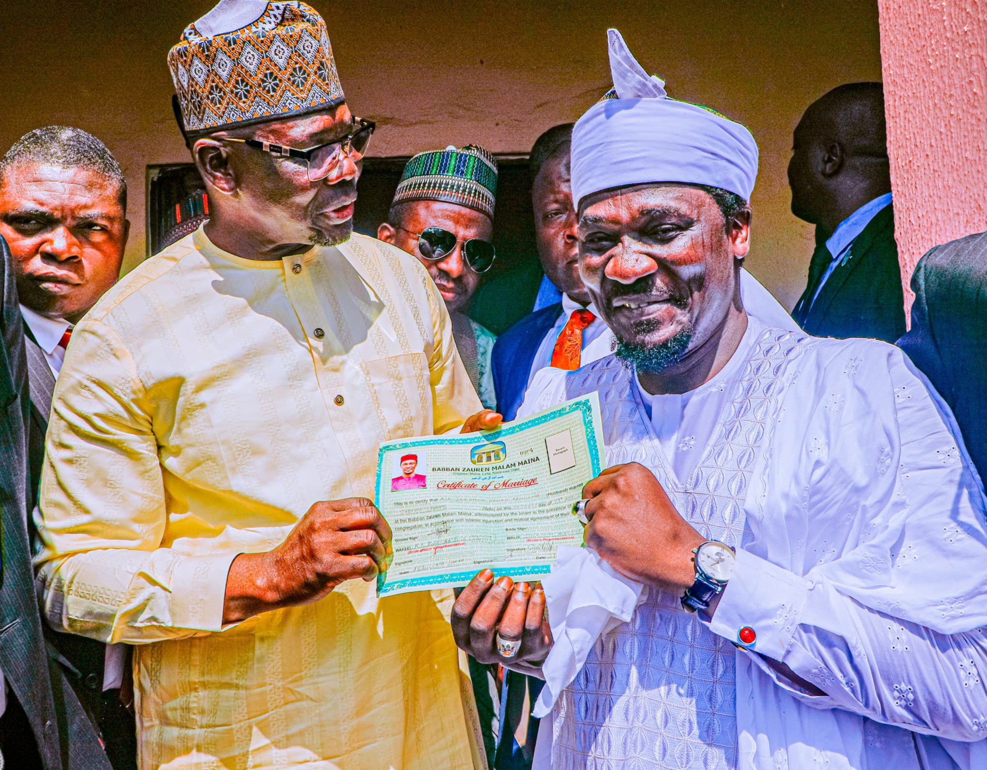 Prince Ibrahim Hassan Abdullahi (Adon Garin Lafia), the Senior Special Assistant on Chieftaincy Affairs to Nasarawa State Governor Abdullahi Sule, has introduced his new third wife Sadeeqa to his first and second wives, Fatima and Husnah. Adon married his third wife, from the Eggon tribe, on Saturday, November 29, 2025, at Baban Zauren, Unguwar Maina area of Lafia. He also provided a new house and Mercedes Benz GLK for his new wife. Meanwhile, Governor Abdullahi Sule officially presented him with his marriage certificate.