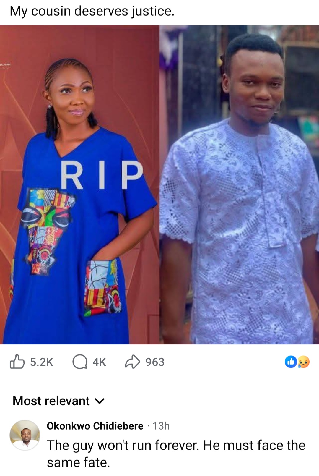 A young woman was found brutally murdred in the home of her fianc after he allegedly invited her while pretending he was sick and needed care. The deceased, Ogechukwu Mmadubugwu, reportedly went to the home of her fianc, Valentine Chibuike Anaikpe, at about 9pm on Monday, Dec. 8, after he told her he was sick and needed medications. Ogechukwu reportedly bought the medications and took to Valentine,  but when she got there, he pretended his situation had gotten worse and begged her to pass the night at his house. Ogechukwu's cousin, Angela Mmadubugwu Ike, who shared the news on Facebook, said Ogechukwu called her mother to update her before sleeping over at Valentine's house. The following day, Dec. 9, no one heard from Ogechukwu and when efforts to reach her and her fianc proved abortive, her family went to Valentine's house where they found her "st@bbed with kn!fe and sharp objects like an animal." "Her bl00d was all over the house," Angela disclosed, adding, "The guy was no where to be found and till now, nobody knows his whereabouts." Angela stated that "Ogechukwu deserves justice" and called on well-meaning Nigerians to help locate the fleeing fianc and report to the nearest police station if they have information on his whereabouts. See below. The post Woman brutally murdred after allegedly being lured by her fianc who is now on the run appeared first on Linda Ikeji Blog.