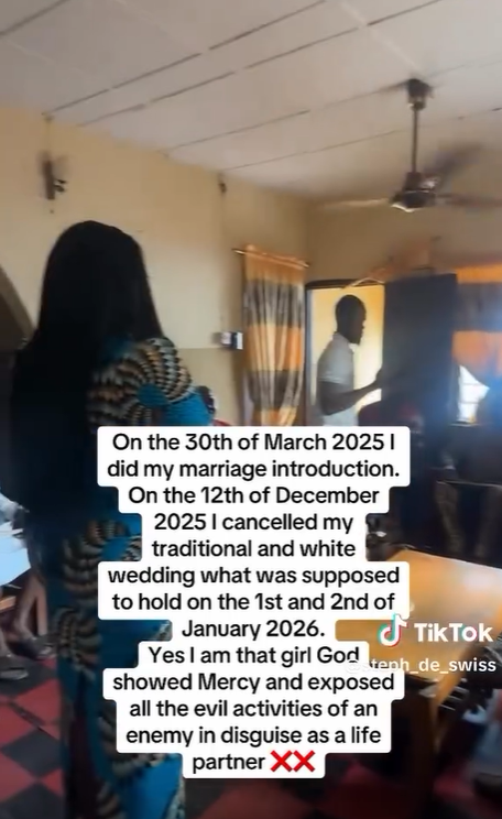 A Nigerian woman has alleged that divine intervention led her to cancel her planned wedding, claiming that God exposed the actions of someone she described as an enemy disguised as a life partner. In a video shared online, the woman said she carried out her marriage introduction on March 30, 2025, but later called off both her traditional and white wedding ceremonies on December 12, 2025. The ceremonies had been scheduled to take place on January 1 and 2, 2026. Yes, I am that girl, she said in the video, adding that God showed mercy by revealing what she called evil activities allegedly carried out by her former partner. View this post on Instagram