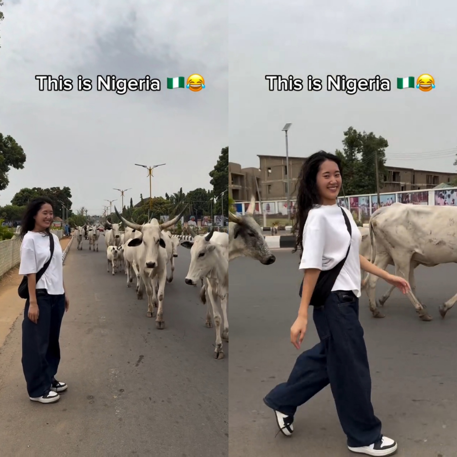 However, it was the moment when she found herself walking alongside these gentle creatures that really stole the show. One of the cows even stopped to sniff her, leaving Jin looking utterly amused. Her Instagram post was captioned with a simple yet telling message: "Cows walking in the same lane with cars." She added a laughing emoji, clearly still trying to wrap her head around this bizarre yet fascinating sight. And with her parting words, "This is Nigeria," she gave us a glimpse into the country's unapologetic and carefree spirit.